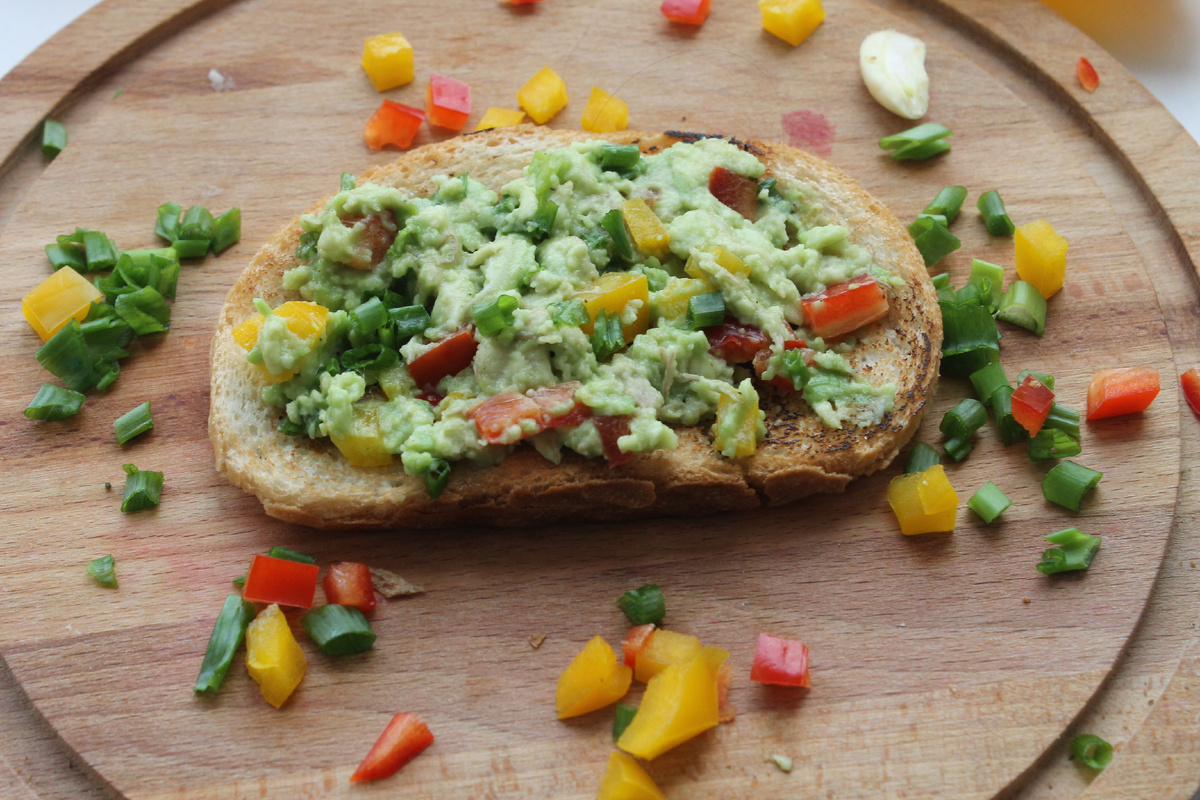 - Брускетта с авокадо и зеленью: Легкая закуска, ароматная и разнообразная. Просто поджарьте хлеб, намажьте его ароматной смесью из авокадо и мелко нарезанных овощей.