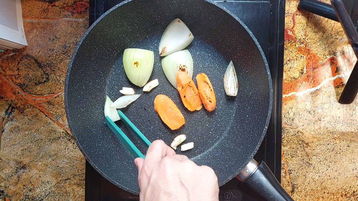 - Лук, морковь, сельдерей – по 150 г;