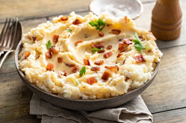 Картофельное пюре с беконом и сыром — это не просто гарнир, а настоящая кулинарная звезда вашего новогоднего стола. Сочетание хрустящего бекона и насыщенного сыра придает этому блюду исключительный вкус и текстуру, которые никто не сможет проигнорировать.