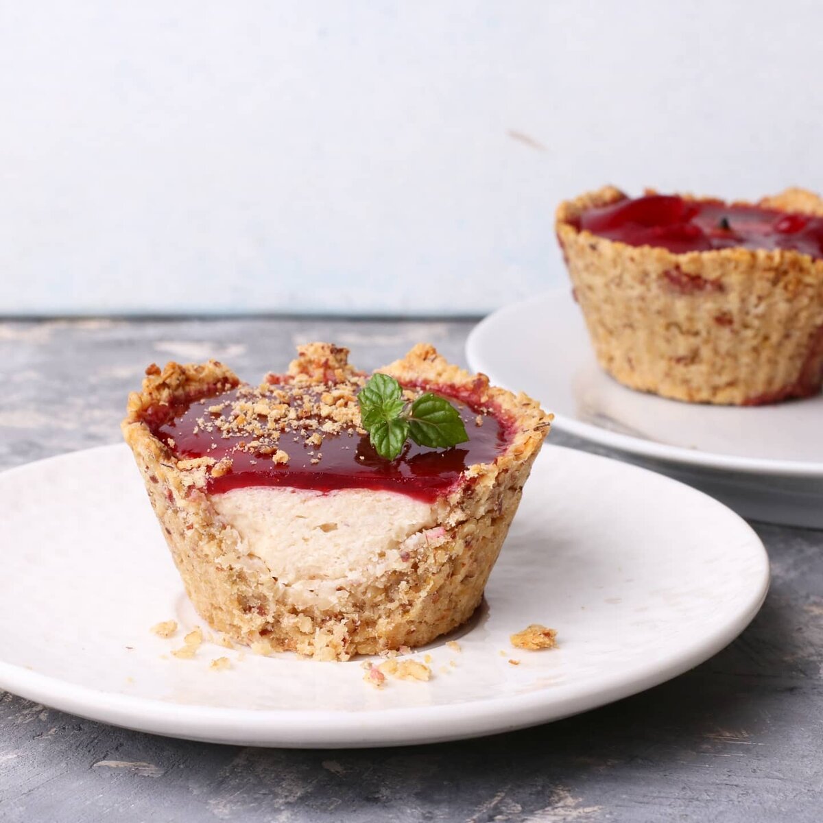 В блендере измельчить овсяные хлопья и орехи до состояния крошки. Добавить мягкое сливочное масло и воду. Все тщательно перемешать до получения однородного теста.Для начинки смешать творог, финики и яичный белок в блендере до гладкости. Разложить тесто по силиконовым формочкам, формируя корзиночки, и залить начинку. Выпекать в разогретой до 180°C духовке около 25 минут.Для желе протереть малину через сито, предварительно используя размороженные ягоды, если они заморожены. В полученное пюре добавить замоченный желатин и аккуратно нагреть до полного растворения, избегая кипения.Желе настоятельно рекомендуется приготовить заранее, чтобы оно успело немного загустеть. Затем аккуратно залить им готовые корзиночки и убрать в холодильник на пару часов для застывания.Эти овсяные корзиночки станут отличным десертом к чаю или кофе, оставляя после себя лишь приятные впечатления!