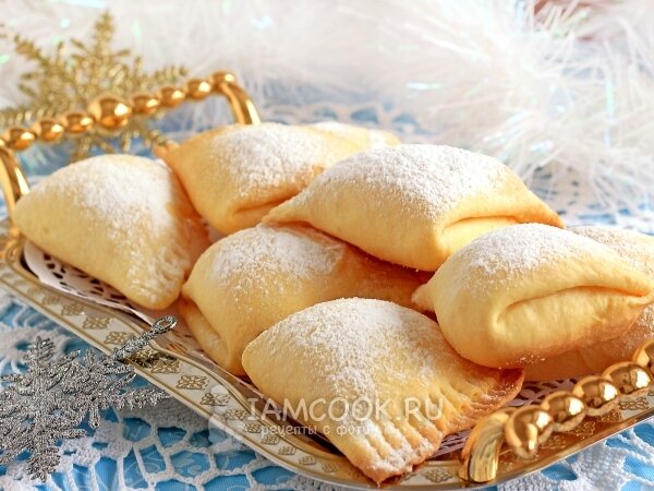 Сложите лепешку пополам, а затем еще раз пополам, закрепите края треугольничка, слегка прижимая их вилкой. Выпекайте печенье на противне с пергаментом при температуре 180 градусов около 15-20 минут до румяности.
