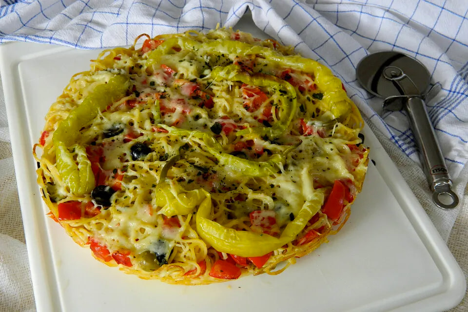 Но сегодня речь пойдет не о любимой пасте с соусом, а о кулинарном эксперименте — пицце из спагетти. Каждый может использовать спагетти, спагетини или любую другую длинную пасту, которая легко укладывается в форму.
