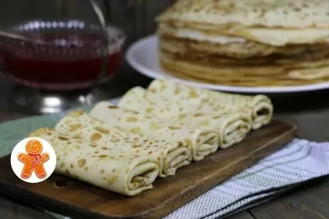 3. Жарка блинчиков: На сухую сковороду или слегка смазанную растительным маслом налейте тесто, распределяя его равномерно. Важно следить за температурой, чтобы поверхность не пузырилась. Обжаривайте блинчик до появления золотистой корочки, не дожидаясь, пока верх полностью схватится. Переверните, как только появятся маленькие пузырьки, и доведите до готовности на другой стороне.