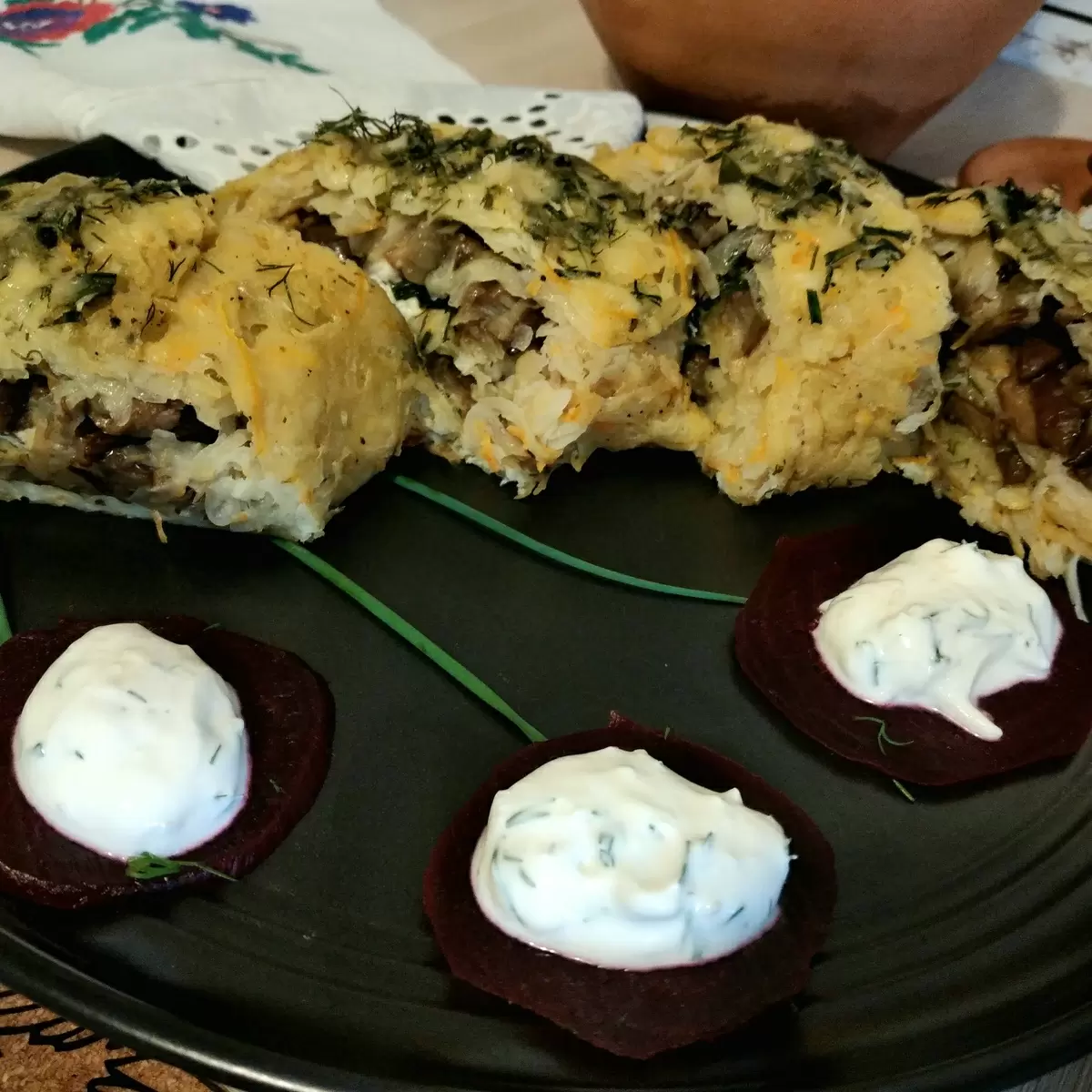 Посыпать зеленью и оставшимся сыром, и вновь поместить в духовку на 20 минут. После запекания оставить немного остыть, а затем нарезать на порции. Подача будет идеальной со сметаной или сметанным соусом. Для соуса можно растереть чеснок с солью и оливковым маслом, добавить в сметану и посыпать укропом и орегано. Получается невероятно вкусно!