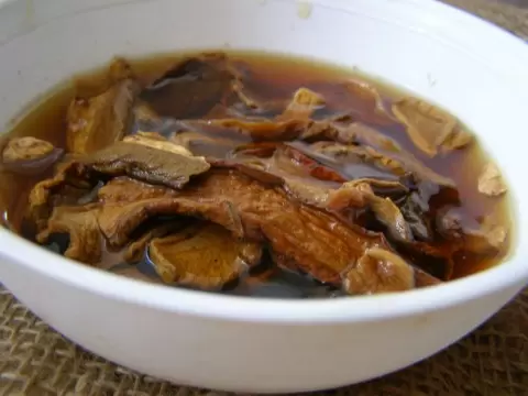Сначала сушеные грибы варят, а затем в отдельной сковороде жарят лук, морковь и шампиньоны. Все ингредиенты собираются вместе, доводятся до кипения и приправляются – результат будет не только сытным, но и возможно получит замечательные отзывы от домочадцев.