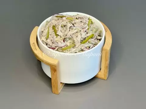 Приготовление салата предельно простое, но требует немного внимания к деталям. Первым шагом является отваривание мяса, которое следует нарезать соломкой после остывания. Затем нарезаются огурцы и лук, которые добавляются к мясу в салатник. Для создания гармоничного вкуса, все ингредиенты необходимо аккуратно перемешать, добавив специи и майонез. После этого салат стоит дать настояться, чтобы вкус ингредиентов раскрывался.