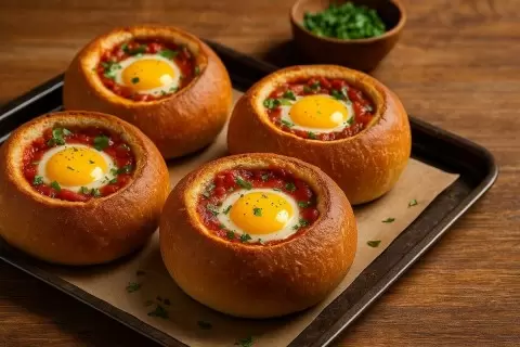 Шакшука, как известно, пришла с Востока и включает в себя яйца, помидоры, перец и особые пряности. Но когда это всё запекается прямо в булочке — получается не просто завтрак, а маленький шедевр, который требует минимум посуды и позволяет окунуться в атмосферу домашнего уюта.