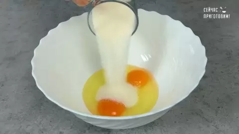 1. В глубокой миске взбить две яйца, добавить тридцать граммов сахара и соль, после чего тщательно перемешать массу венчиком.