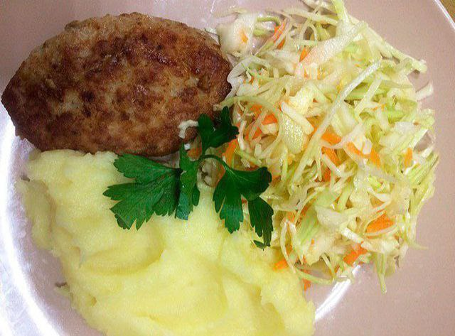 Понедельник: куриные котлеты с картофельным пюре и овощным салатом