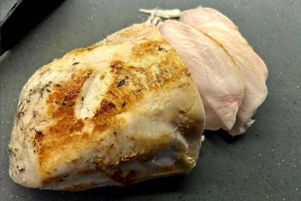 Для начала куриное филе нужно промыть и обсушить, удаляя излишки жира и пленок. Обильно приправьте солью и перцем, положите в зип-пакет, добавьте масло, тимьян и чеснок. Закройте пакет, оставляя часть открытой, опустите его в воду, чтобы удалить воздух, и затем полностью запечатайте.