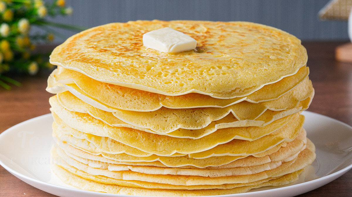 9. Из этого количества теста получится около 16 блинов, которые можно подавать с любимыми добавками. Вкусно и очень просто — такой рецепт украсит любой стол в праздник!
