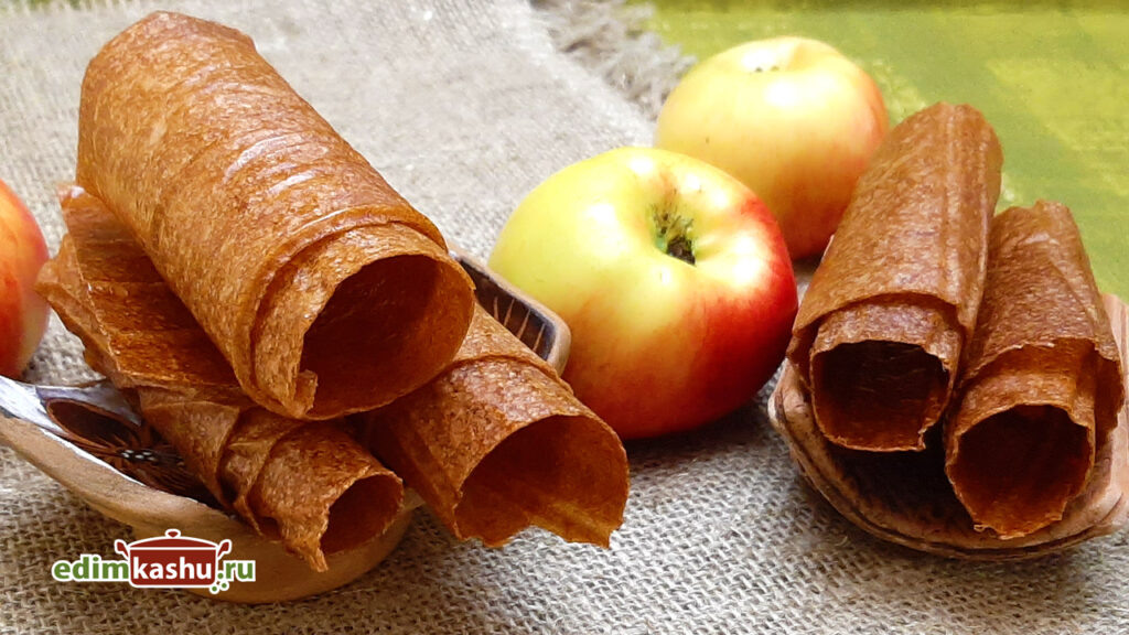 Десерт сушат в духовке при 100 °C с приоткрытой дверцей (между дверцей и корпусом помещают карандаш или деревянную ручку). Сушка занимает примерно 2–3 часа, при неравномерном прогреве противни переворачивают. Готовая пастила не липнет к рукам, держит форму и остаётся гибкой — но пересушивать не стоит, иначе она превратится в ломкие чипсы.