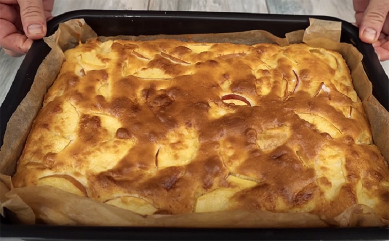 Тесто для пирога не требует замесу и долгой подготовки. Можно добавить щепотку корицы или лимонную цедру — такие нюансы делают яблочное лакомство ещё более запоминающимся.