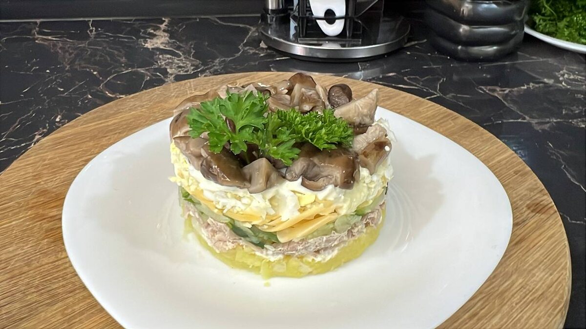 Новый год уже близится, и время начинать подготовку к празднованию! На этот раз предлагаем вам рецепт салата, который станет настоящим украшением новогоднего стола. Сочетание мяса и грибов сделает его не только сытным, но и невероятно вкусным!