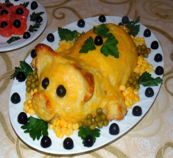 На завершение, взбиваем оставшийся желток и намазываем им «поросенка». Отправляем форму в заранее разогретую духовку при температуре 180°C на 30-40 минут, до получения золотистой корочки. В итоге на праздничном столе появится великолепное блюдо, которое несомненно привлечет внимание, сообщает Империя вкусов.