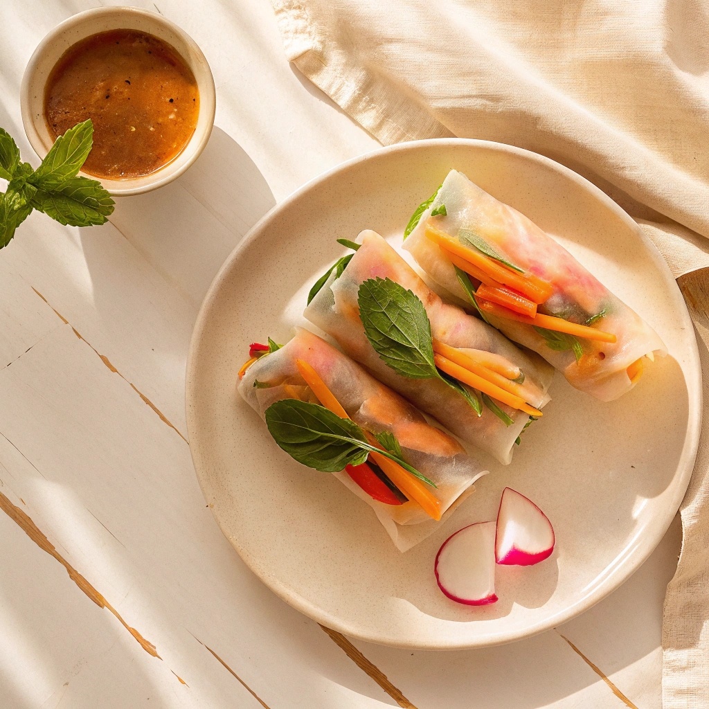 Эти роллы содержат лишь 140 калорий и много клетчатки, что делает их отличной альтернативой традиционным спринг-роллам с креветками.