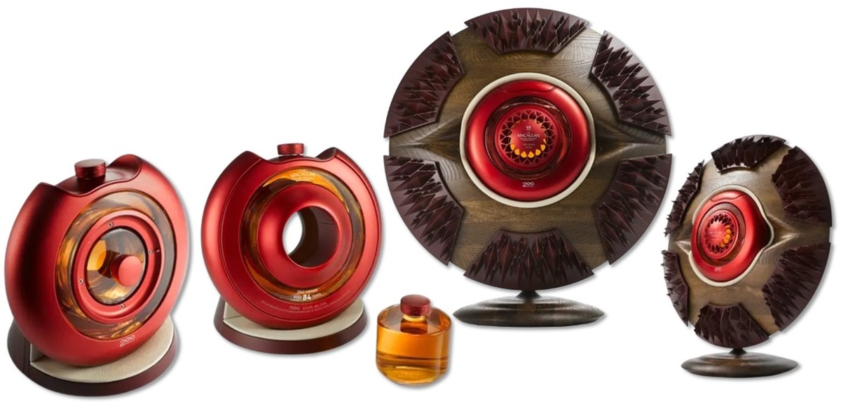 Интересная упаковка включает два резервуара: один с выдержанным виски, другой с гораздо более молодым напитком, произведенным в 2018 году и с крепостью 54,6%. Элементы дизайна иллюстрируют двухсотлетие винокурни и «защиту природы» через дубовую скульптуру, украшенную 200 шипами. Всего будет выпущено лишь 200 графинов, каждый из которых будет продаваться по цене 190 000 долларов. Приобрести этот эксклюзивный напиток можно только по приглашению от самой Macallan, что делает его еще более желанным.
