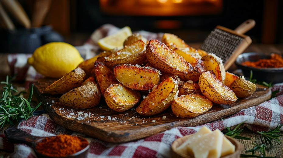 Начните с разогрева духовки до 200°C. Тщательно промойте картошку и нарежьте ее дольками. В глубокой миске смешайте картофель с оливковым маслом, специями, лимонной цедрой и половиной тертого пармезана. Выложите смесь на противень и запекайте в духовке около 35–40 минут. За 5 минут до завершения готовки не забудьте посыпать оставшимся сыром — это создаст золотистую корочку и добавит нежный аромат.