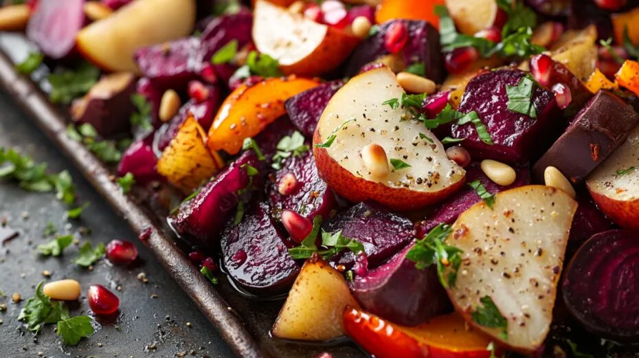 Сентябрь радует своими дарами — сочной свеклой, спелыми грушами и ярким болгарским перцем. Этот теплый салат станет настоящей находкой для тех, кто хочет насладиться всеми красками осени на тарелке.