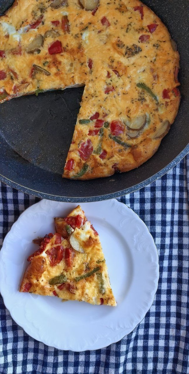 Фритата охватывает множество вариаций. Можно добавить картошку, кусочки колбасы или зелёный горошек для яркости.