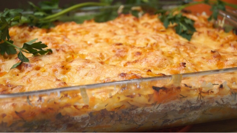 Запеканка под удивительно золотистой корочкой станет настоящим украшением стола. Она не только вкусная, но и оставляет чувство насыщения, что делает её отличным выбором для семейного ужина.