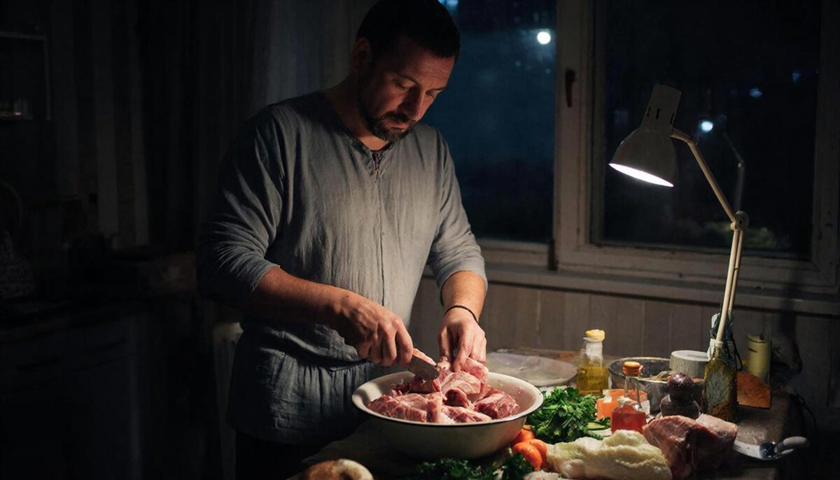 Когда аромат начал разноситься по кухне, в голову пришла идея: газировка сделает мясо более нежным. В процессе он ощущал себя словно в тумане, механически работая ножом. После добавления всех ингредиентов, включая немного воды, запах успокоил его тревоги.
