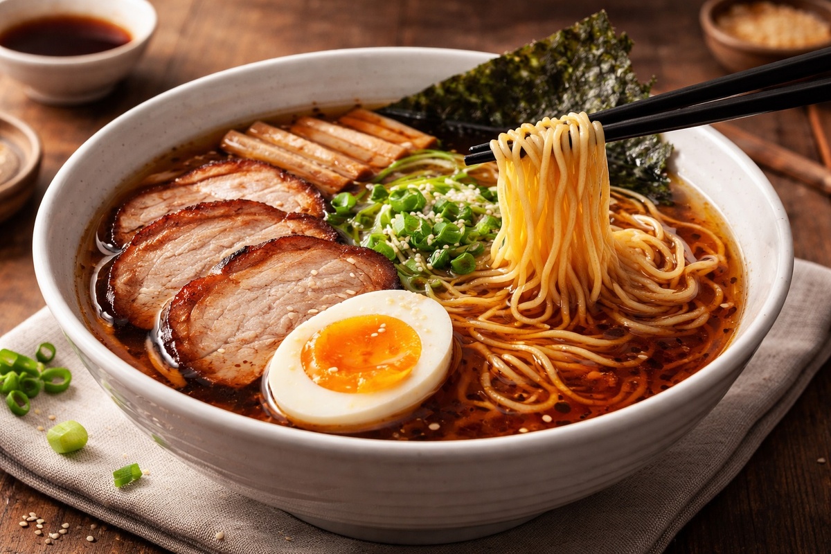 - Хаката рамен: Региональный вариант тонкоту с более тонкой лапшой и быстрым оформлением. Это сытный обед, идеальный для тех, кто ценит скорость.