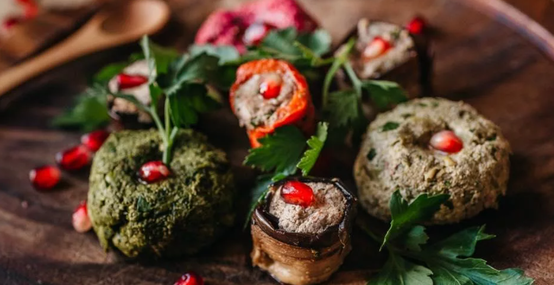 Свеклу нужно тщательно вымыть, завернуть в фольгу и запекать 60 минут при температуре 200 градусов. После остывания очистить и натереть на крупной терке, отжав лишнюю влагу. Лук, чеснок и кинзу измельчают в блендере до состояния пасты, затем соединяют с натертой свеклой. Сформировать шарики и украсить их гранатовыми зернами.