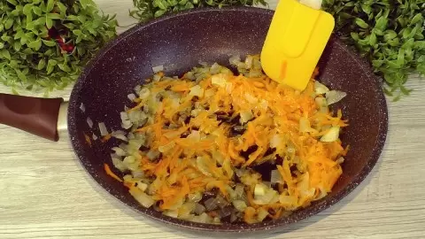 Первым делом обжарьте лук и морковь на растительном масле до мягкости, не доводя до полной готовности, а затем дайте им немного остыть.