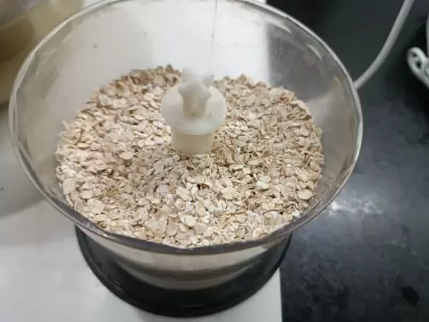 Сначала овсяные хлопья следует измельчить до порошкообразного состояния. Затем к ним добавляют яйцо, сметану, сахар, соль и ванилин. Все ингредиенты тщательно перемешиваются, а если масса окажется слишком густой, можно добавить немного воды, чтобы добиться консистенции жидкой сметаны. Не забудьте, что с течением времени масса может загустеть.