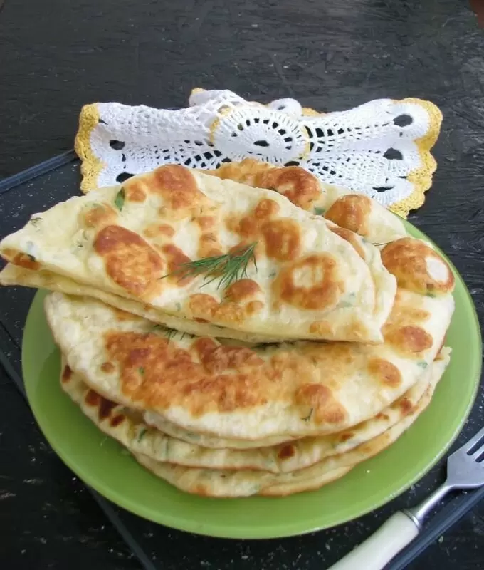Эти лепешки можно как подавать сразу же, так и хранить в холодильнике в течение пары дней. Разогрев в микроволновке вернет им прежнюю мягкость. Для разнообразия можно разделить тесто на две части: одну оставить без зелени, чтобы угодить тем, кто ее не любит, а вторую вернуть к традиционных рецепту.