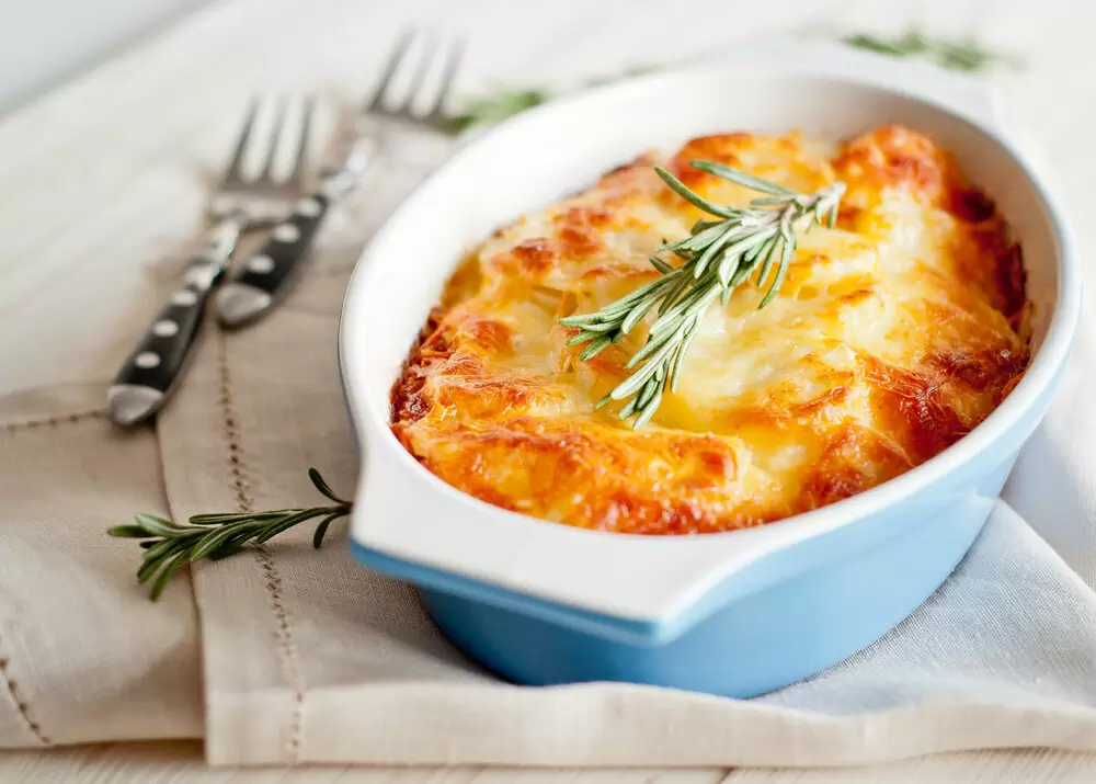 Для особенно полезного варианта можно использовать куриную грудку и заменить майонез на несладкий йогурт или сливки. Замаринованное в томатной пасте мясо создаст аппетитную корочку и добавит легкую кислинку. Запеченный картофель сохраняет витамины и минеральные вещества, идеально утоляя голод, однако блюдо довольно калорийное. Поэтому рекомендуется подавать его с большим количеством зелени и овощным салатом.