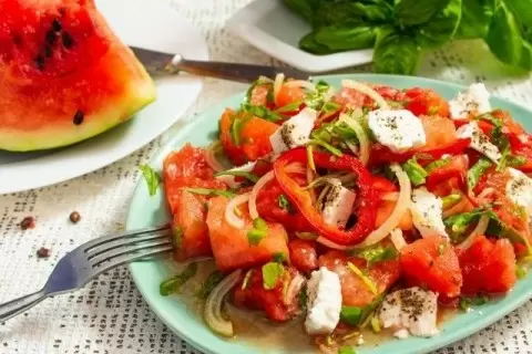 Салат из арбуза с брынзой можно подавать как легкую закуску перед основным блюдом, а также в качестве полноценного ужина в жаркий летний вечер. Насладитесь этим удивительным вкусом, который подарит вам радость и освежит в знойный день!