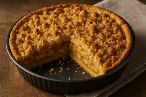 Домашние десерты всегда имели особую ценность, и один из них особенно выделяется на фоне остальных — песочный пирог с яблоками и штрейзелем. В нём гармонично сочетаются хрустящий верхний слой и нежная яблочная начинка, которая быстро подхватывает все восхищённые взгляды. Выходной вечер становится моментом волшебства, когда простые ингредиенты превращаются в нечто удивительное.