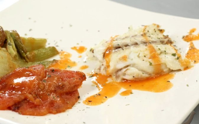 Перед подачей снять шкурку, нарезать порционно и сервировать с гарниром из лука, фенхеля и помидоров, полив оставшимся соусом от тушеных овощей. Блюдо можно украсить сушеными специями, создавая настоящую кулинарную симфонию. Это даст возможность насладиться вкусом настоящей французской кухни, готовя дома.